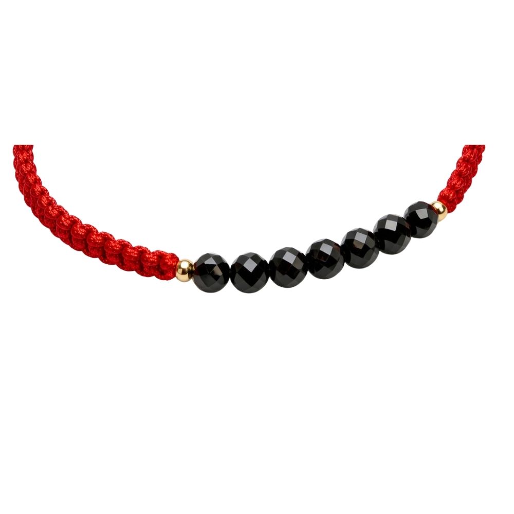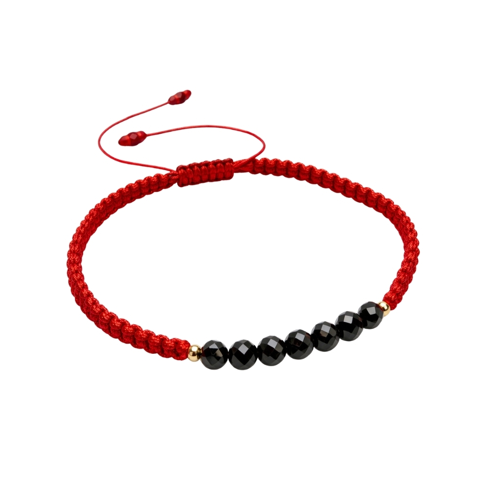 Bransoletka została wykonana na czerwonym sznurku, który w symbolice wielu kultur uznawany jest za znak ochrony, siły życiowej oraz energii. Czerwony kolor ma przyciągać dobrą energię i chronić przed negatywnymi wpływami.