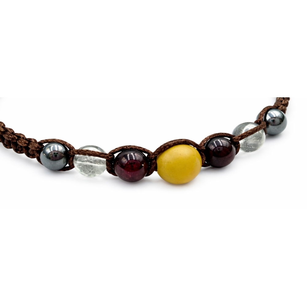 Personalizowany talizman dla osób urodzonych pod znakiem Koziorożca (22.12 – 19.01). Ta wyjątkowa bransoletka łączy w sobie naturalną energię starannie dobranych kamieni z minimalistycznym charakterem brązowego sznurka. Ręczne wykonanie sprawia, że biżuteria stanowi symboliczny i stylowy dodatek dla osób ceniących naturalne minerały oraz ich znaczenie.