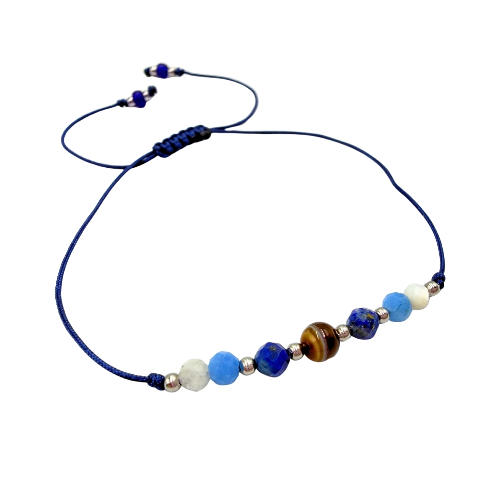 Personalizowany talizman dla osób urodzonych pod znakiem Ryb (19.02 – 20.03). Ta wyjątkowa bransoletka łączy w sobie elegancję niebieskiego sznurka z naturalną energią starannie dobranych kamieni. Całość uzupełniają srebrne dodatki, które nadają biżuterii subtelny i harmonijny charakter. Ręczne wykonanie sprawia, że jest to wyjątkowy dodatek dla osób ceniących symboliczne znaczenie kamieni naturalnych.